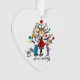 Ein bezauberndes Strichmännchen-Acrylschmuck mit Strichmännchen-Mann und erwartende Dame, Kleinkind, und einer grauen Katze vor dem dekorierten Urlaubskatze mit Text, der lautet "Wir erwarten!"! Der Verzierungsrücken weist das gleiche Design auf, mit einem Bereich, den Sie einfach mit Ihrem Familiennamen und dem aktuellen Datum anpassen können. Dieses niedliche Strichmännchen erwartet Sie mit einem Acrylschmuck und ist ein großartiges Geschenk für Familie und Freunde, eine wunderbare Art, Ihnen zu verkünden, dass Sie ein Kind erwarten, und natürlich ein großartiges Memento Ihrer Ferienzeit als erwartende Eltern für die kommenden Jahre zu schätzen!