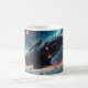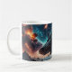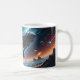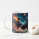 Ein Raumschiff segelt über der Oberfläche eines Planeten, mit Monden, Planeten und Asteroiden in der Ferne auf dieser wunderschönen und farbenfrohen Tasse. Ideal für alle, die die Erkundung des Weltraums und die Science Fiction Liebe haben.