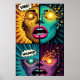Ignite your walls with this electrifying Pop Art Comic Poster featuring dual split faces and exploding starburst eyes. A fusion of psychedelic surrealism, glitch aesthetics, and vibrant comic book energy, this artwork captures the emotional overload of the digital age in four dynamic quadrants.