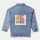 Dieses visuell auffällige und inspirierende Design enthält den Text "Just Travel More". Das Wort ist in zwei Hälften geteilt, die links Seite ist in warmen, sonnigen Gelben und die rechte in verspieltem, süßem Rosa. Die bedrängte und Vintag inspiriert Typografie mit rauen und ungleichen Kanten verleiht dem Ganzen ein handgefertigtes, künstlerisches Ambiente. Das Design ruft Nostalgie hervor und ermutigt dazu, das innere Kind und die Verspieltheit des Betrachters beim inspirier von Reisen zu berücksichtigen. Hier auf hellblau 🔵 Denim-Jacke abgebildet, mit anderen Jacket-Stilen erhältlich