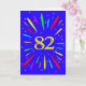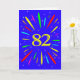 Eine explosive 82. Geburtstagskarte! Was für eine wunderbare Art, Geburtstagsgrüße zu schicken. Die Zahl 82 in hellgelb mit einer Explosion von hellen Farben und Sternen.