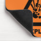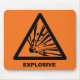 Orange mousepad mit einem schwarzen explosiven Gefahrensymbol.