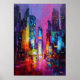 Expressionistische Tokioter Skyline Neon-Nacht-Sta Poster