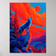 Expressionistischer Wolf unter karmesinrotem Mond Poster