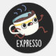 Expresso Funny Running Coffee Pun Dark BG Runder Aufkleber