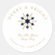 Exquisite Christmas Navy Blue & Fake Gold Snowflake Thanks for Business Classic Round Stickers.