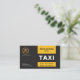 Ein einfaches schlichtes Design mit schwarzem Hintergrund. Auf der rechten Seite der Karte befinden sich zwei rechteckige, dunkelgelbe Spalten. In der obigen Spalte finden Sie Ihren prestigeträchtigen Namen und Ihre Jobbezeichnung. Im Mittelpunkt steht die Geschäftsoption "TAXI"; Diese Option ist anpassbar und Sie können sie auf Ihren Anzug ändern. In der oberen links Ecke befindet sich neben dem Firmennamen das goldene Logo eines Chauffeur für Ihre Imitate. Nach Süden in der Nähe der Basis ist der Slogan Option.