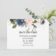 Diese exquisite Herbst-Blumenhochzeit speichern das Datum Einladung ist perfekt für eine tropische Hochzeit. Das Design zeigt handgezeichnet rosa, dunkelblau und marineblau-weiße Blume, inspirierend Eleganz, Klasse und natürliche Schönheit.