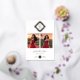 The card features a sophisticated floral diamond-shaped anagram, combined with a two-photo collage, creating a unique and contemporary look. The metallic foil finish adds a touch of luxury and distinction, ensuring your invitation stands out.