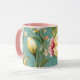 Diese bedruckte Tasse besticht durch ein exquisites Design aus rosafarbenen und gelben Magnolienblüten, die durch zarte weiße Blume vor einem ruhigen aquamarinen Hintergrund hervorgehoben werden. Das Blumenmuster schafft eine harmonische Mischung aus Eleganz und Lebendigkeit, die perfekt zum Aufheizen Ihres täglichen Kaffee- oder Teekrituals geeignet ist. Die aus hochwertigen Materialien gefertigte Tasse sorgt für Langlebigkeit und bewahrt gleichzeitig ihren atemberaubenden, verblassten Druck. Mit einem komfortablen Griff und einer klassischen Form ist es sowohl stilvoll als auch praktisch für den Alltag. Ob als charmante Ergänzung zu Ihrer Sammlung oder als nachdenkliches Geschenk, diese blumenreiche Tasse bringt jedem Gaumen eine Touch der Schönheit der Natur.