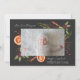 Rustikale und moderne Urlaubskarte mit 2 Fotos Ihrer Neugeborenen, die Aquarellbilder von Winterbotanicals wie Mistletoe, Kiefernzweig, Beeren, Orange, etc. enthalten. Der Hintergrund ist kohlegrau.