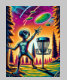Farbenfrohe Extraterrestrial Alien wirft Scheibe Golf bunt ai art.