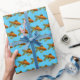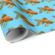 Extravaganter Goldfisch bedeckt dieses hellblaue Packpapier, als ob es in einer großen Schule schwimmen würde. Kennst du jemanden, der ihren Goldfisch als Haustier Liebe? Sie werden dieses einzigartige Packpapier schätzen.