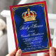 Königliche Babydusche mit hübscher Rot- und Goldkrone auf einem schönen roten, königsblauen und goldenen Hintergrund. Sie können den Text nach Bedarf für Ihre Veranstaltung ändern. Drucken Sie auf Hochglanzpapier für beste Ergebnisse.