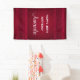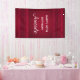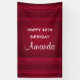 Ein Geburtstagsbanner mit rotem Hintergrund, der mit eleganten Wirbel und Zierdesigns an den Rändern geschmückt ist.