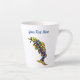 Diese Latte Tasse hat einen extravaganten abstrakten Fisch mit bunten Schuppen und Flossen in den Farben Blau, Orange, Gelb, Rot und Grün. Passen Sie Ihren Text mit der Vorlage an.
