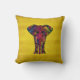 Eine Elefantenillustrierung mit hellen und kühnen Farben mit dekorativem Blumenmuster und Mandela-Stil. Das Hintergrundmuster ist ein gelb gestreiftes Design.
