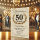 Feiern Sie mit dieser raffinierten Einladung 50 Jahre geschätzte Erinnerungen. Mit goldenen Akzenten und zeitloser Typografie geschmückt mit Imitaten, Set der perfekte Ton für eine Wiedersehen, die ein Leben voller Verbindungen und geteilter Momente ehrt.