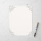 Extravagantes Elfenbeinpapier bestickt mit Schnörkeln in einem Schiefergrau/Braun. Sie können Ihre Feierlichkeiten ganz individuell ausdrucken (Sie können direkt online über die Option Text hinzufügen und abschalten) oder selbst drucken. Wir haben eine große Auswahl an extravaganten Schreibpapieren, Notizbüchern, Karten und vieles mehr bei Wrap and Roll.