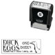 Eine niedliche kleine Ente, die von der Seite dieser Briefmarke hereingeguckt wird, zeichne die Aufmerksamkeit auf Ihr Produkt und Ihren Firmennamen. Briefmarke der Eierschachteln schnell mit dieser selbstfärbenden Briefmarke. Auch gut für die Herstellung von Etiketten für Ihre Eierkörbe. Kaufen Sie zusätzliche Briefmarke Padkolorfarben - Gelb und Gold sehen auf dunklen Papieretiketten gut aus, Braun sieht auf Kraftpapier "erdig" aus, Grün sieht "Bio" auf Elfenbein aus.