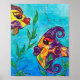 Ein Druck aus einem originellen, gemischten Fischbild, das mit Aquarellstiften, Tinte und Acrylfarbe erstellt wurde. Eine tolle Geschenkidee für Fischliebhaber.