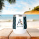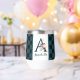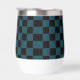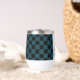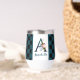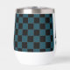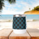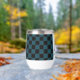 Trendy Weintumbler mit extravaganten Blumen und großem Buchstaben / Initial A mit schwarz-blauem Schachbrettrand. Personalisieren mit Vor- oder Nachnamen