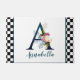 Wunderschöne und extravagante Blumen sind goldene Blätter, lila Rose und blaue Wildblumen Verzierungen auf großen Buchstaben / Initial A mit schwarz-weißem Schachbrett Rand. Personalisieren mit Vor- oder Nachnamen