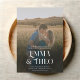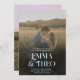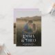 Mit unserer Hochzeitseinladung laden wir Sie mit Eleganz und Charme ein. Die Namen des Ehepaares werden in einem extravaganten, dekorativen Serif-Schriftart angezeigt, der Ihr schönes Foto überragt. Ideal für eine Touch der Eleganz an Ihrem besonderen Tag.