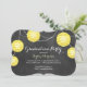 Extravagantes Bandskript und gelbe Partylaternen auf Sets eines Tafelhintergrundes der Ton dieser Abschlusseinladung und -Party. Wenn zusätzliche Einzelteile in dieser Sammlung benötigt werden, treten Sie mit uns einfach mit Ihrem Antrag bei prettyfancyinvites@gmail.com in Verbindung
