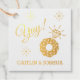 Extravagante Goldfolie umhüllt Verlobung mit "yay" in lustigen Skript-Schriftart und Glitzern springen herum. Die Liste unten lovin Ehepaar Name. Ideal für Brautparty, Junggeselinnen-Abschied oder Verlobungsfeier.