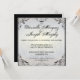 Extravagante gotische Fledermäuse Halloween Hochzeitseinladung. Diese elegante, extravagante und doch unheimliche Halloween-Einladung hat alles, was Sie brauchen, um Ihre Themenhochzeit zu feiern! Mit einem opaleszenten Hintergrund und einem faszinierenden und hübschen Kronleuchter im Hintergrund sind die Seiten mit extravaganten gotischen Schnörkeln in Metalltönen und Schwarzen geschmückt, und die Flügel fliegen durchwegs in einem weißen Halbkugel. Diese Einladung ist großartig für diese Halloween- oder gotische Hochzeit.