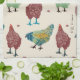 Extravagante Hennen, meine Lieblingshühner warfen für meine Malereien von ihnen auf. Zeitgenössische, lustige Tücher für eine moderne Küche. Bienen, Marienkäfer und Hinterhofhühner.
