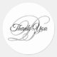 Erstellen Sie Ihre eigenen Dankeschön-Aufkleber mit dem Monogramm des Paares mit einem extravaganten kalligraphischen Skript in hellgrau. Mit dieser extravaganten Monografie wird es notwendig sein, die Buchstabenplatzierung für einen Teil des Alphabets zu verschieben. Sie können die Farben, die Größe und die Platzierung des Schriftartes anpassen. Sie können den Kalligrafiestil ändern. Extravagante Schrift-Kalligraphie-Hochzeit weiß, grau und schwarz Dankeschön.