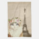 Für Katzenliebhaber bietet das Küchentuch ein Vintages Foto mit Sepia im Hintergrund des Eiffelturms mit einem Overlay von extravaganter Katze mit Blumenkrone.