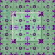 Weich voneinander entfernte, komplexe Formen auf blauem Hintergrund. Die Fleur-de-lis ist die Ankerform für dieses Design. Die klassische Drei-Punkte-Figur wird mit einer Anordnung von vier Punktstern und -florierungen ausgeglichen. Die Formen sind in erster Linie lila. Der Hintergrund ist ein grünes Muster.