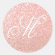 Erstellen Sie Ihre eigenen weichen pastellfarbenen, rosa mit Monogramm Aufkleber. Das Hintergrund-Foto erstellt Imitate sowohl mit Glitzer als auch mit einer weißen Funkelgrafik. Es gibt viele weiße, unfokale Lichtpunkte. Die Rose Gold Glitzer druckt wie eine digitale Grafik.