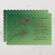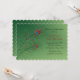 Eine dramatische Einladung mit einem Gefälle, grünem Hintergrund und zwei lebendigen Pfauenfedern. Gut geeignet für jede glückliche Feier.Die Karte lässt sich leicht mit Ihrem Text, Schriftart, Schriftart, Papierform und der Auswahl von sechs Papiertypen anpassen.