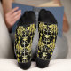 Dieses Sockenpaar zeichnet sich durch ein altes Dekorationsmuster aus, Set in Gold vor schwarzem Hintergrund, für ein wirklich einzigartiges Aussehen.