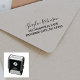 Eine einfache und übersichtliche Briefmarke mit Ihrem vollständigen Namen, Nachnamen und Straßenadresse. Ideal, um die Rücksendeadresse auf Dankeschön Notizen und Briefe.
