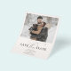 Ankündigen Sie Ihren besonderen Tag, ohne Ihr Budget zu strapazieren mit unserer preiswerten Hochzeit speichern Sie die Datumskarte! Mit dem von Ihnen gewählten Foto auf der Vorderseite, erweckt diese Karte Ihre Freude und Spannung wunderbar. Unter dem Bild verbindet "Save the Date" elegant SerifenSchriftart mit extravagantem, zartem Drehbuch und sorgt für eine stilvolle Ankündigung. Ihre Namen und das Datum werden sichtbar angezeigt, damit Ihre Gäste ihre Kalender markieren können. Auf der Rückseite, fügen Sie ein weiteres Foto und mehr Details über Ihre kommende Hochzeit. Ideal für Paare, die eine Touch Eleganz zu einem erschwinglichen Preis gewollt haben!