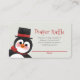 Halten Sie sich an Windeln fest, indem Sie bei Ihrer Pinguin-Babydusche im Winter eine Windelverlosung veranstalten! Versenden Sie diese moderne und geschlechtsneutrale Weihnachtspinguin-Dillierungskarte zusammen mit Ihrer Pinguin-Babydusche-Einladung. Diese niedliche Pinguin-Windel-Gewinnerkarte enthält einen dunkelroten Text mit dem Titel "Windelruder" und eine handgemalte Pinguin-Illustration mit Cartoon von OhMyStarling. Niedliche Schwarz/Weiß und Rot-Farbe auf diesem Weihnachtspenguin-Design für Ihre Pinguin-Thema Babydusche oder Winter Baby Sprinkle Party! Diese Weinkarte ist vollständig anpassbar. Sie können den Text bearbeiten, indem Sie auf "Personalisieren Sie diese Vorlage" klicken. Auf der Rückseite dieser Karte befindet sich ein originelles, sich wiederholendes Muster niedlicher und extravaganter Pinguine mit Oberhüten, Smoking und Bogen-Krawatte, Schneemännern, Schneeflocken, Rotharzen und Bonbons von OhMyStarling.
