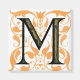 Diese Hauptstadt "M" ist ein Set auf einem Hintergrund von goldenen Blätter und Rollen.