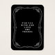 Eine hübsche Vintage Chalkboard-Karte mit charmanten Schriftzeichen und Scrollrahmen, die Ihre Hochzeitsfeier hervorheben. Eine charmante Ergänzung zu Ihrer Hochzeit diese Karte hat die Namen der Braut und des Bräutigams und das Hochzeitstag auf der Vorderseite, mit Ihrer persönlichen Nachricht an die Gäste auf der Rückseite. Ideal, um die Krawatte auf Gefälligkeiten, Maurerkirschen oder Weinflaschen an der Tafel, rustikale, Scheune- oder Landeshochzeit zu kennzeichnen; der weiße Text auf schwarzem Hintergrund ist eine moderne, aber Vintage Aussage. Liebliche kurvige Banner und Text gibt Interesse und macht Ihre Details auffällig. Achten Sie auf alle unsere koordinierenden "Extravagant Chalkboard"-Produkte wie Hochzeitseinladungen, Antwortkarten, Tischnummern, Aufkleber, Geschenkboxen, Servietten, Adressetiketten und Porto - alles, was Sie brauchen, um ein passendes Ensemble für Ihre gesamte Hochzeitsfeier zu schaffen.