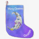 Dieser Weihnachtsmond hat einen extravaganten, halbmondfarbenen Mond mit hübschem Gesicht und ist mit bunten Formen in Kreisen, Dreieck und einer lila, blauen und gelben Schriftrolle auf lila Himmelshintergrund mit gepunkteten Sternen verziert. Passen Sie den frohen Weihnachtstext und Ihren Namen mit den Vorlagen an.