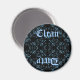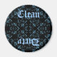 Schönes, aufwändiges Design in schwarz und blau auf einem Geschirrspüler-Magneten, der auf der einen Seite "sauber" und auf der anderen "schmutzig" sagt.