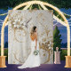 Lassen Sie sich mit der Extravaganten Kulisse des White Hummingbird, einer luxuriösen Ergänzung zur White Hummingbird Wedding Collection, ein großartiges Statement abgeben. Diese mit einem digital bearbeiteten AI-Bild gestaltete Kulisse bietet ein aufwändiges Set mit Goldfiligranen, zarten Blumenelementen und Perlenakzenten vor einem ausgeklügelten, neutralen Hintergrund und schafft so eine atemberaubende visuelle Darstellung. Diese elegante Kulisse eignet sich perfekt für Hochzeitsfeiern, Empfänge, Tische, Fotos und andere Veranstaltungen. Sie bietet eine Touch an Opulenz. Ob als Anlaufpunkt für Ihre Geliebten, ein stilvolles Ambiente für Fotos oder eine elegante Ergänzung Ihres Interieurs, dieses Design unterstreicht das Ambiente formeller Hochzeiten und Gartenveranstaltungen gleichermaßen.