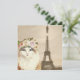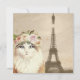 Vintages sepia-farbenes Foto im Eiffelturm mit einem Overlay von extravaganter Katzenkatze mit Blumenkronen