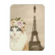 Vintages sepia-farbenes Foto im Eiffelturm mit einem Overlay von extravaganter Katzenkatze mit Blumenkronen