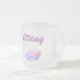Diese mattierte Tasse aus Glas wurde mit einem extravaganten Lippenstift-Design gestaltet und zeichnet sich durch ihren Namen in lila Schriftart aus. Darunter ist ein Lippenstift-Druck, der lila und blau ombre ist. Personalisieren Sie Ihre noch heute! Design des Lipsticks: https://www.etsy.com/shop/OriginsDigitalCurio