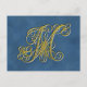Extravaganter, königlich eleganter Monogramm-Buchstabe M in goldgelb auf einem trüben Hintergrund (kann gelöscht werden) auf einem farbigen Hintergrund platziert, der zu einer beliebigen Farbe geändert werden kann oder ganz gelöscht und durch ein personalisiertes Foto ersetzt wird. Jeder Buchstabe des Alphabets ist in meiner Galerie auf Postkarten mit passenden Briefmarke erhältlich. Außerdem sind Grußkarten oder Mitteilungskarten verfügbar, während auf dem Bild der Briefmarke des mit Monogramm Buchstabens Ihrer Wahl.